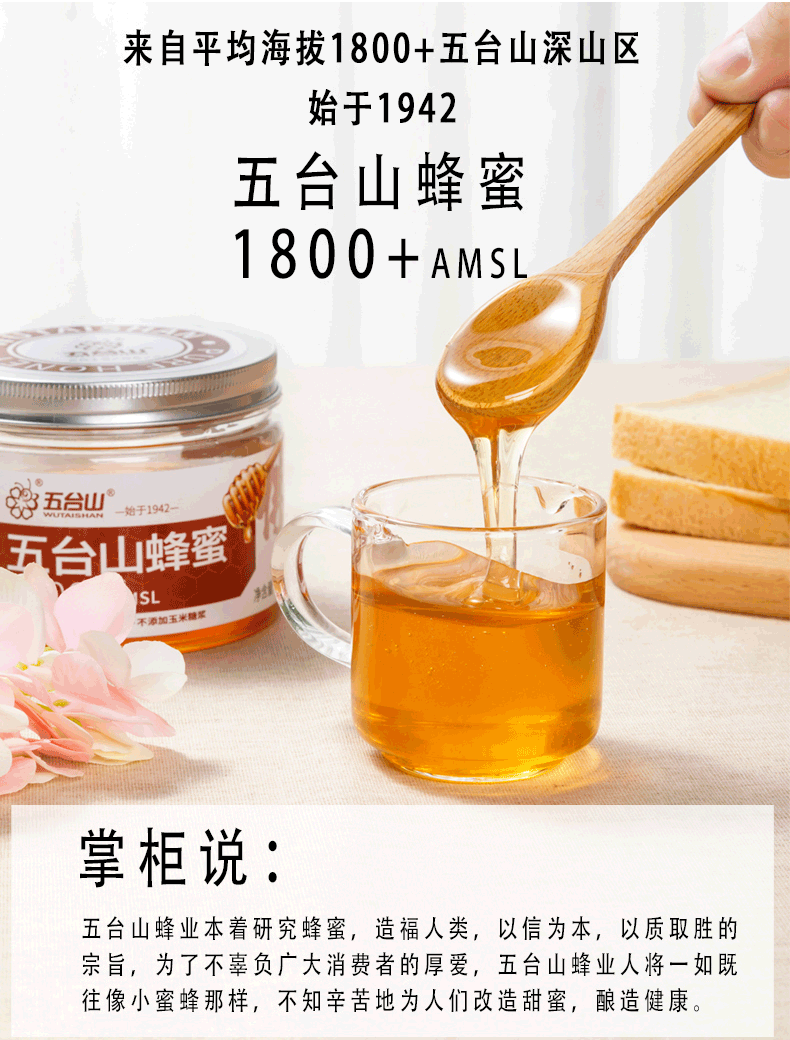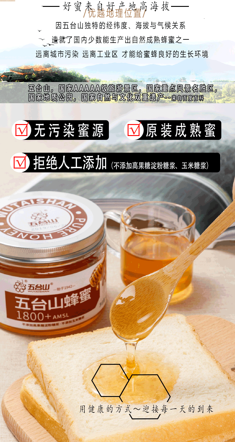 五臺山蜂蜜1800+AMSL蜜源430g/瓶